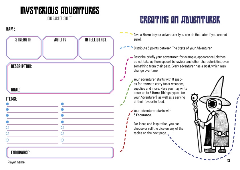 Mysterious Adventures is a rules-light role-playing game of strange friends in stranger lands.