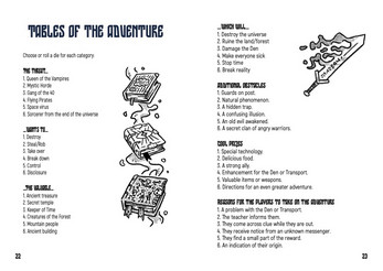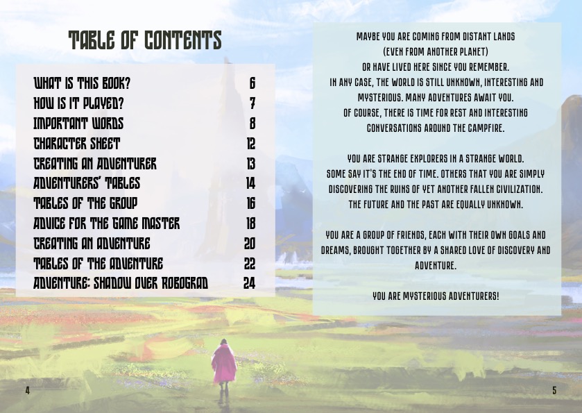 The book includes simple rules for creating a character, advice for the game master and tools for creating adventures, as well as an introductory adventure.